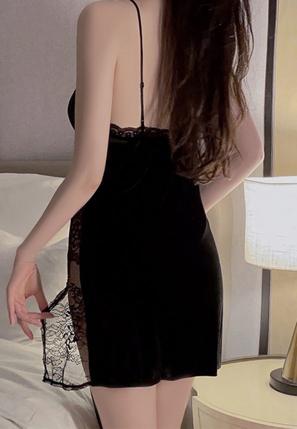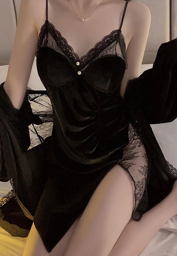 Velvet patchwork Low-cut padded suspender nightgown outer robe CA24112038BK